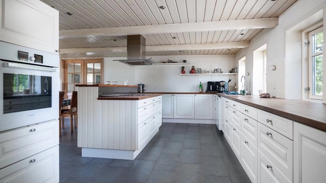 Stort køkken / alrum med brændeovn